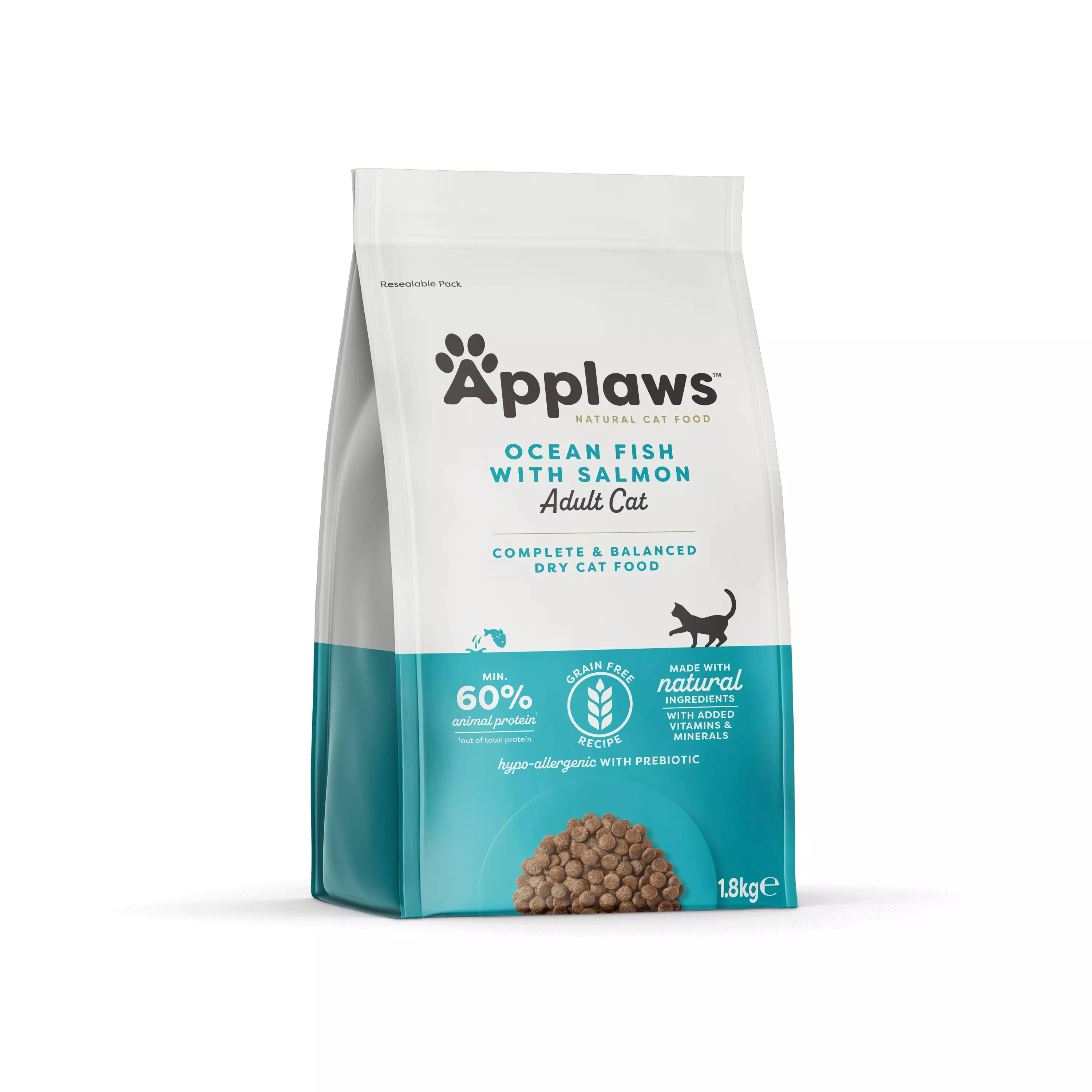 Applaws Merikala & Lohi viljaton kuivaruoka on kehitetty kissoille, joille ei sovi kana tai punainen liha proteiinin lähteeksi. Kalapohjainen kuivaruoka sopii myös kissoille, jotka pitävät kalan mausta ja tuoksusta. Viljattomana vaihtoehtona tämä ruoka on erinomainen valinta myös kissoille, joilla on herkkyyksiä tai ruoansulatusongelmia.
