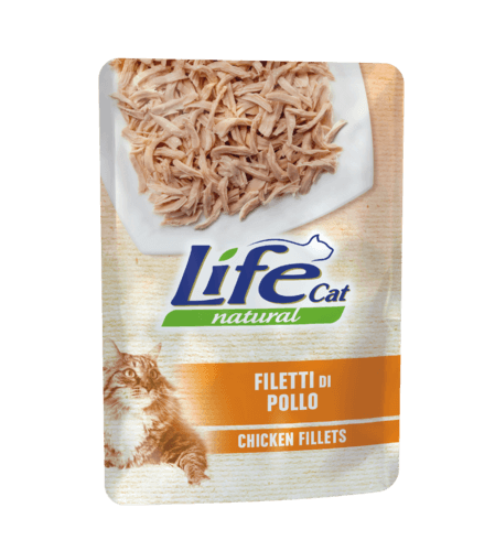 LifeCat Kana (kananrintafile) 70g annospussi hyytelössä on täydennysrehu kissoille. Kanassa on runsaasti elintärkeitä proteiineja, vähän rasvaa ja se on helposti sulava. Lisäksi siinä on paljon tyydyttymättömiä rasvahappoja, mineraaleja ja vitamiineja.