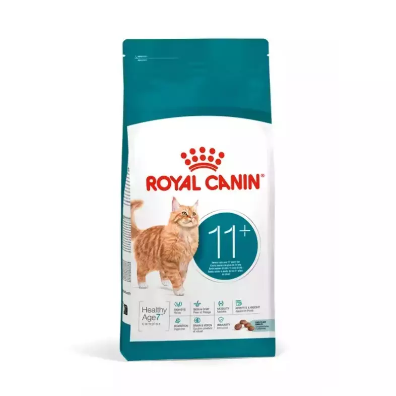 Royal Canin Ageing 11+ on täysravinto yli 11-vuotiaille kissoille. Kuivaruoka on kehitetty tukemaan ikääntyvän kissan hyvinvointia kattavasti. Koostumus perustuu HealthyAge7™ Complex -ravintoaineyhdistelmään, joka tukee seitsemää seniorikissan keskeistä elintoimintoa.