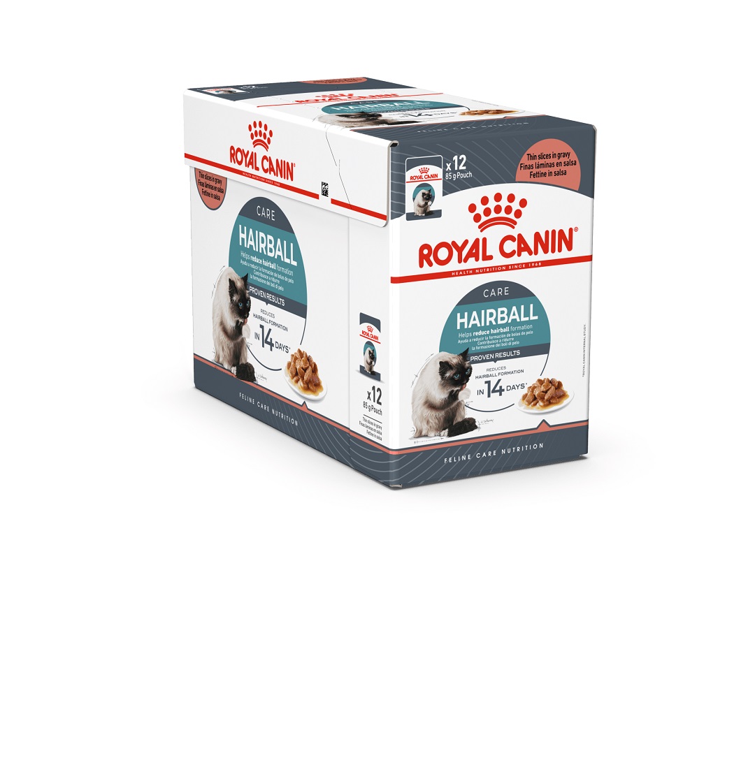 Royal Canin Hairball Gravy on aikuisille kissoille tarkoitettu märkäruoka, joka on suunniteltu vähentämään karvapalloja suolistosta. Märkäruoka on täysravintoa ja se sisältää ohuita suikaleita maistuvassa kastikkeessa.