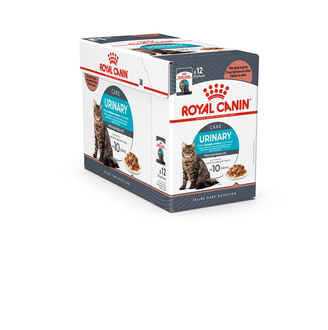 Royal Canin Urinary Care -säilyke on tarkoitettu aikuisten kissojen virtsateiden hyvinvoinnin ylläpitoon ja virtsavaivojen ennaltaehkäisyyn. Märkäruoka on täysravintoa ja se sisältää ohuita paloja maistuvassa kastikkeessa.