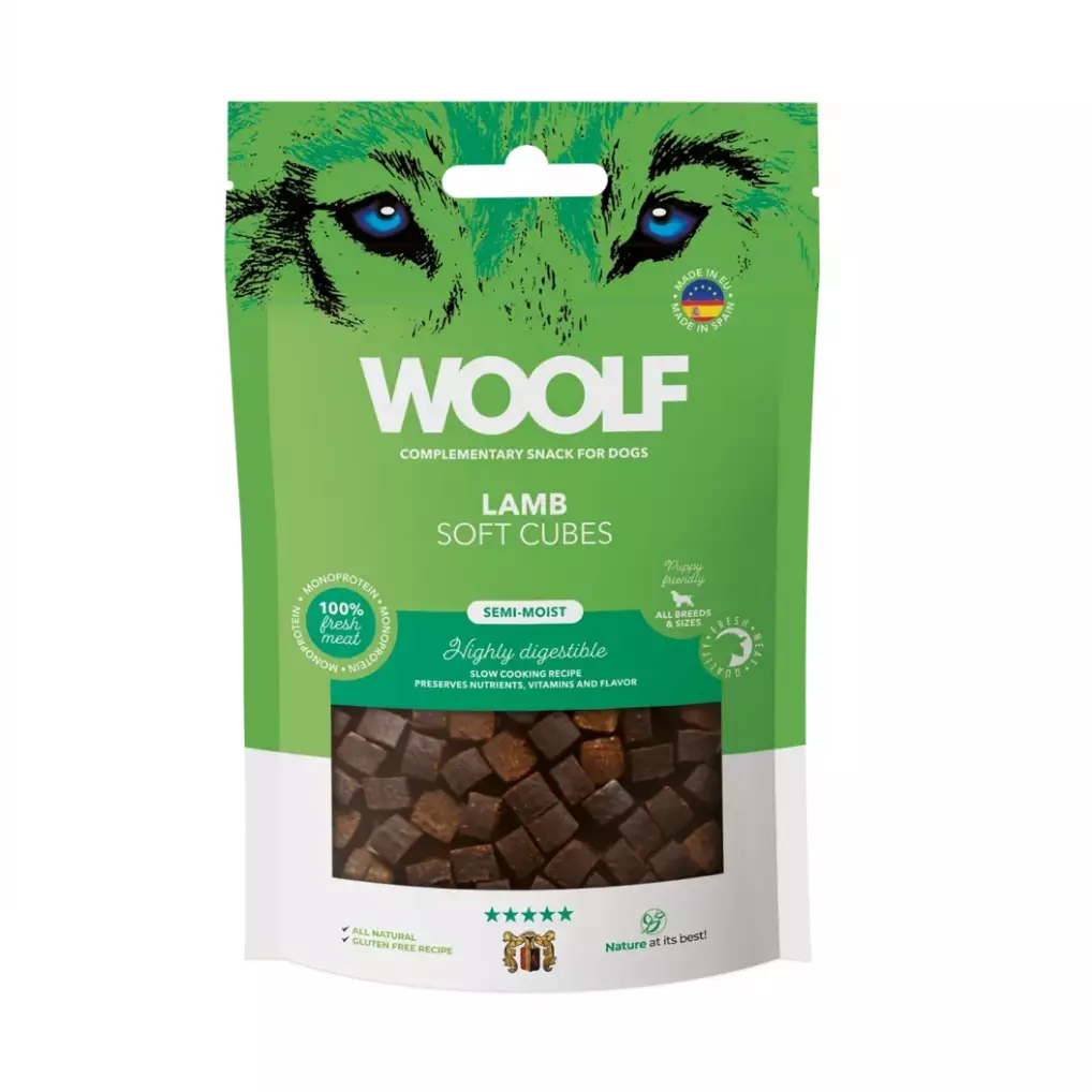 Woolf Soft Cubes Lamb herkulliset ja pehmeät lampaanlihakuutiot tarjoavat luonnollisen makuelämyksen ilman keinotekoisia säilöntä- ja lisäaineita.