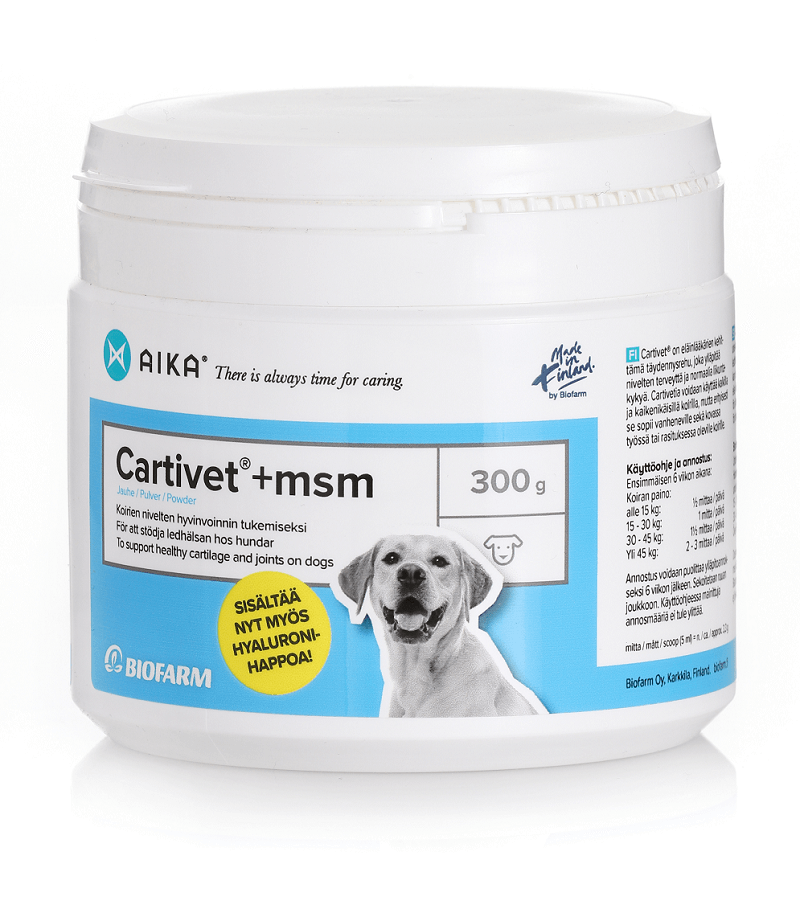 Cartivet+MSM on eläinlääkärien kehittämä täydennysravinto, jossa on kaikki nivelten hyvinvoinnille oleelliset ravinteet.