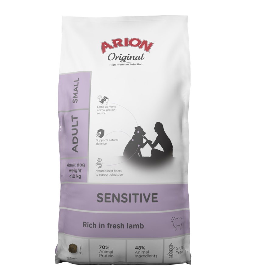 Arion Sensitive Small Lammas -täysravinto on gluteeniton ja vehnätön vaihtoehto aikuisille, pienikokoisille koirille, joiden aikuispaino on alle 10 kg.