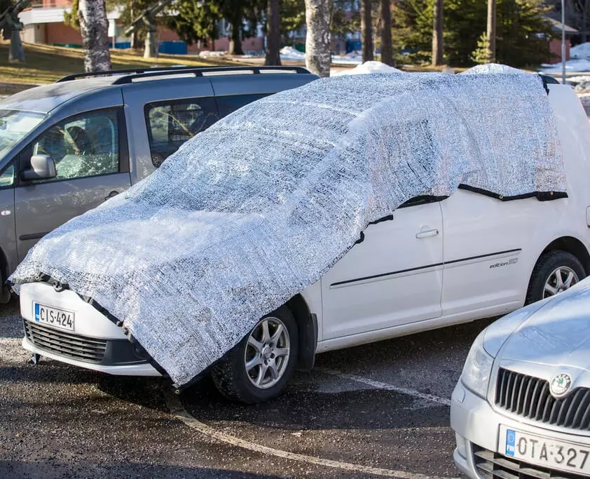 Auringonsuojapeitto auttaa kesähelteellä pitämään auton, häkin ja teltan viileämpänä.