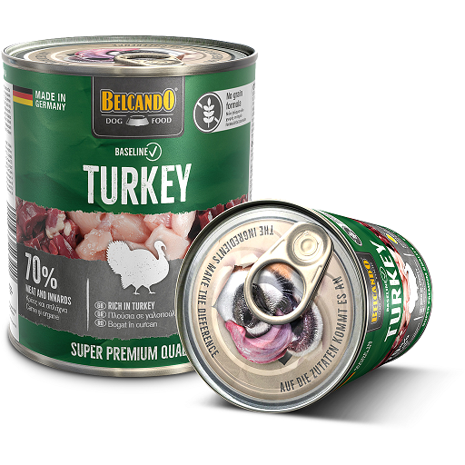 Belcando Baseline Kalkkuna on laadukas ja maistuva, tuoreesta lihasta ja sisäelimistä valmistettu viljaton koiran täysravinto. Ravintoaineiden ja lihaisan maun säilyvyyden takaamiseksi kaikki ainesosat on hellävaraisesti höyrytetty säilykkeessä. Lihan ja sisäelimien lisäksi ruoassa on ohdakeöljyä, joka sisältää erityisesti ihon ja turkin hyvinvoinnille tärkeää luonnollista E-vitamiinia. Vastustamaton märkäruoka koirasi jokapäiväiselle aterialle tai herkulliseksi vaihteluksi nykyisen ruoan rinnalle!