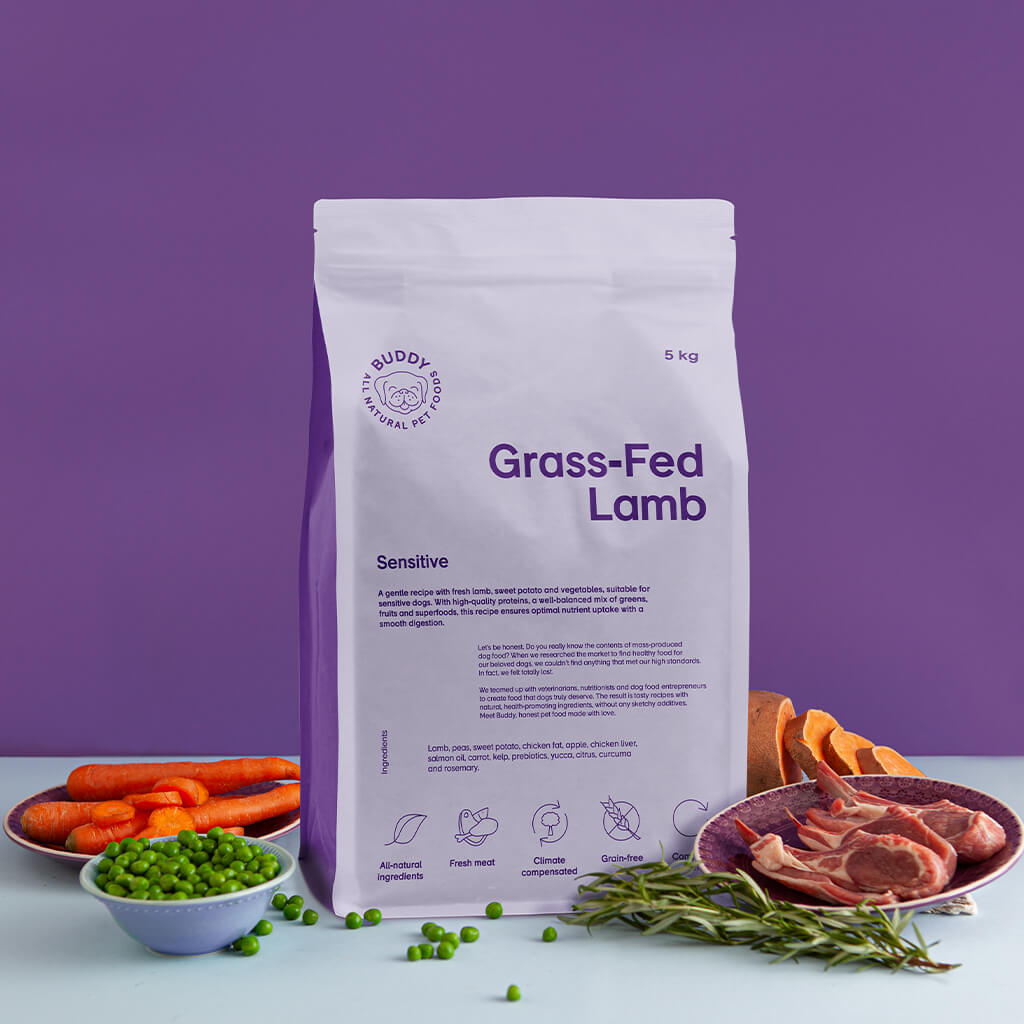 Ruokien puhtaat raaka-aineet eivät sisällä teollisia säilöntäaineita, maku- tai väriaineita. Tuotteet eivät myöskään sisällä gluteenia tai viljaa. Kaikki Buddy-koiranruoat ovat 100% ilmastokompensoituja.