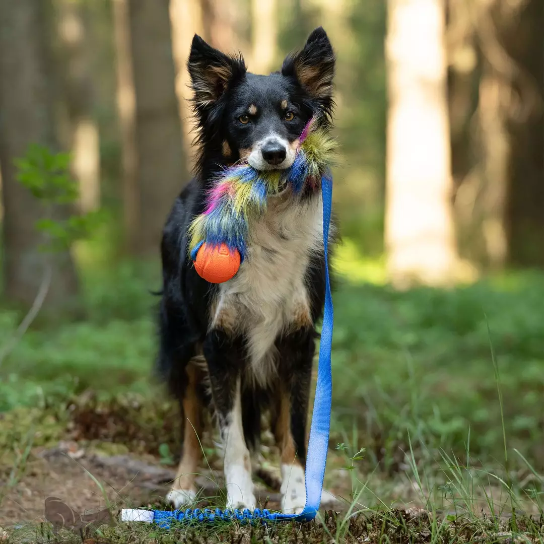 Chuckit-kumipallo ja pehmeä tekoturkis houkuttelee koirasi vauhdikkaaseen saalisleikkiin. Pitkä, joustokahvainen sopii erinomaisesti leikin opetteluun ja innokkaille vetäjille, sillä se kestää rajummankin leikityksen.