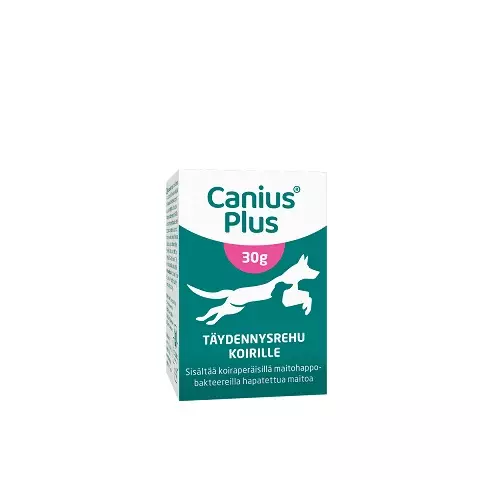 Annostelu: Canius® Plus 30 g pakkaus riittää kuukaudeksi ja 60 g pakkaus kahdeksi kuukaudeksi yli 3 kg koiralle.• Koiran paino 1–3 kg: 1/2 annostelulusikallista vuorokaudessa