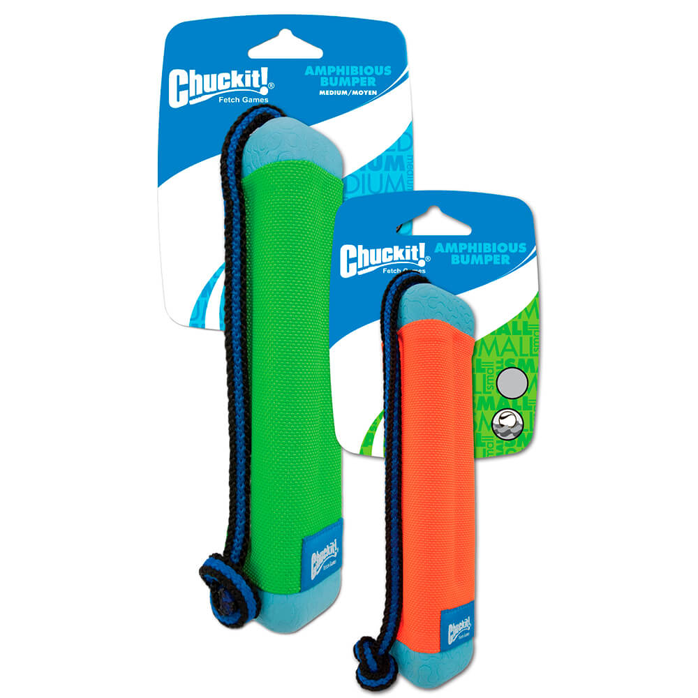 Kevyt ja kestävä Amphibious bumper on suosittu koirien lelu vesileikkeihin. Vesilelun muodon vuoksi koiran on helppo napata se suuhunsa ja lelun taipuisuus ja pehmeys mahdollistavat tiiviin otteen, jolloin koira ei hauko uidessaan paljoa vettä suuhunsa.