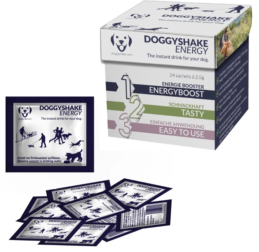 Doggyshake Energy on helposti veteen sekoittuva energiajuomajauhe, joka täyttää koiran energiantarvetta lisääntyneen aktiivisuuden kuten kisapäivän aikana. Doggyshake Energy juomajauhe tarjoaa myös maistuvan vaihtoehdon koiran nesteytykseen kuumilla keleillä.