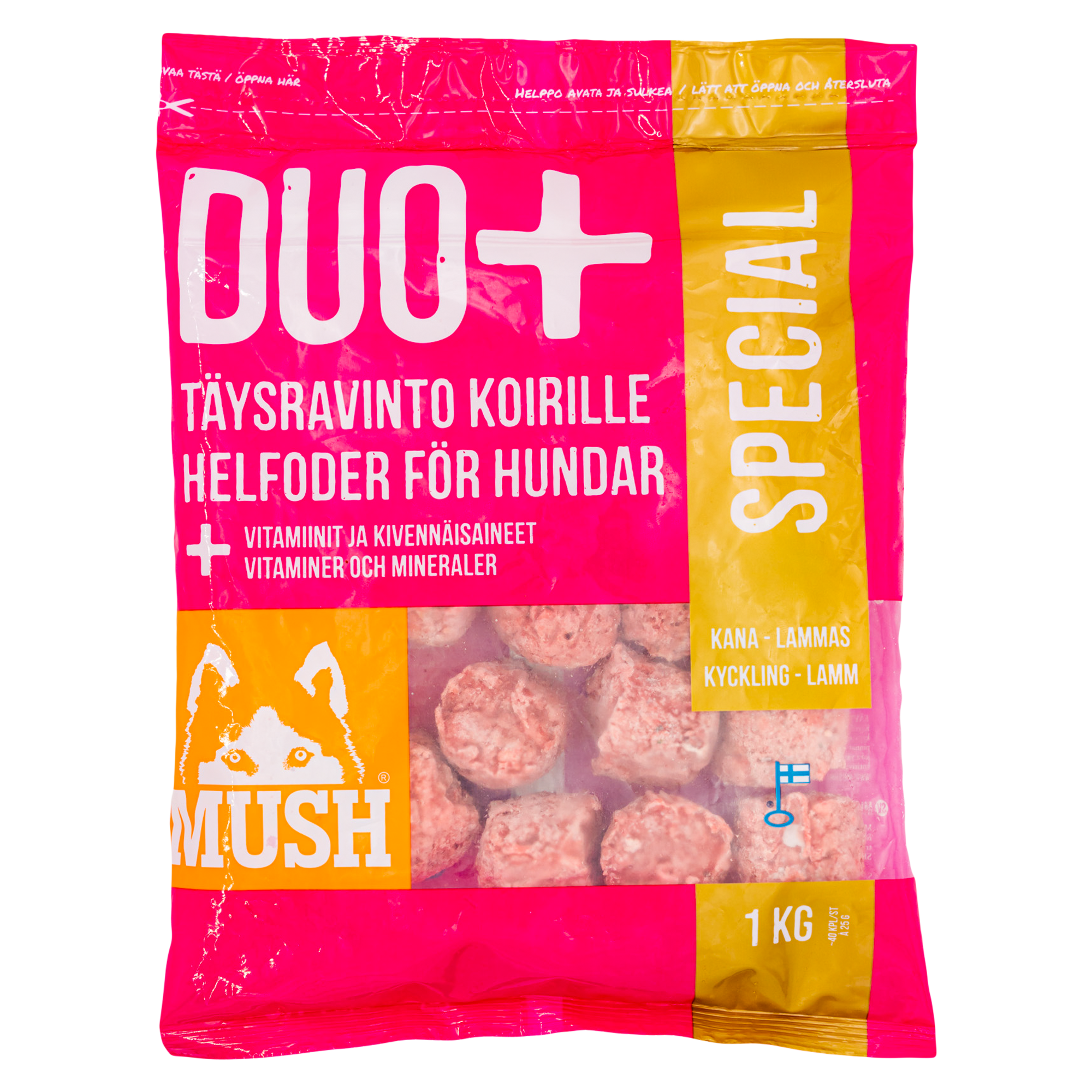 MUSH DUO+ ® Special Kana – Lammas on vitaminoitu täysravinto, joka sopii kaikille koirille. Se on on kehitetty sinulle, joka haluat antaa koirallesi lajityypillistä ruokaa ja olla varma siitä, että koirasi saa kaiken tarvitsemansa ruoasta