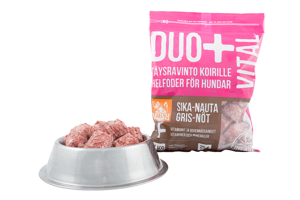 MUSH DUO+ ® VITAL sika-nauta on vitaminoitu täysravintomme kaikille koirille, joka on kehitetty sinulle joka haluat antaa koirallesi lajityypillistä ruokaa, unohtamatta helppokäyttöisyyttä!