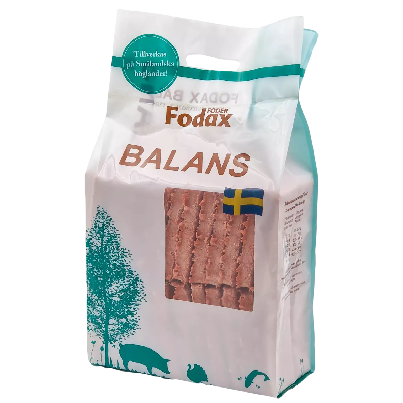 Fodax Balans on suunniteltu erityisesti herkkävatsaisille koirille, joiden energian saannin tarve on madaltunut. Vähäkalorisempi resepti on kuitenkin erittäin maistuva ja se sisältää runsaasti lohen luonnollisia omega-rasvahappoja, jotka edistävät ihon, turkin, sydämen ja vatsan toimintaa ja kuntoa. Pakkaus (10kg) sisältää 23-27 kappaletta annoslevyjä. Yksi levy painaa n. 380-435 grammaa.