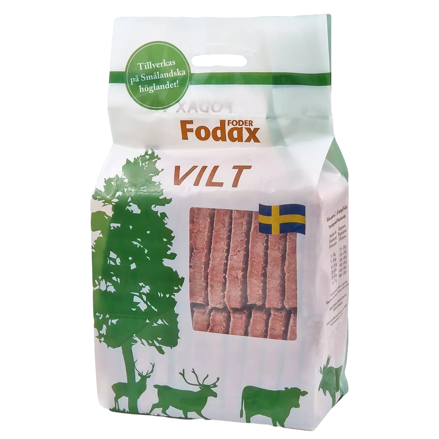 Fodax Vilt on viljaton raaka täysravinto, joka on suunniteltu erityisesti nirsoille, herkkävatsaisille ja ruoka-aineallergioista kärsiville koirille.