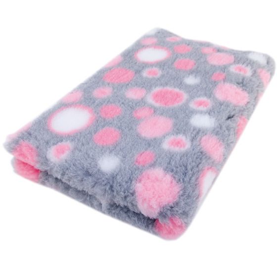 Väri: Harmaa, pinkeillä kuplakuvioilla.