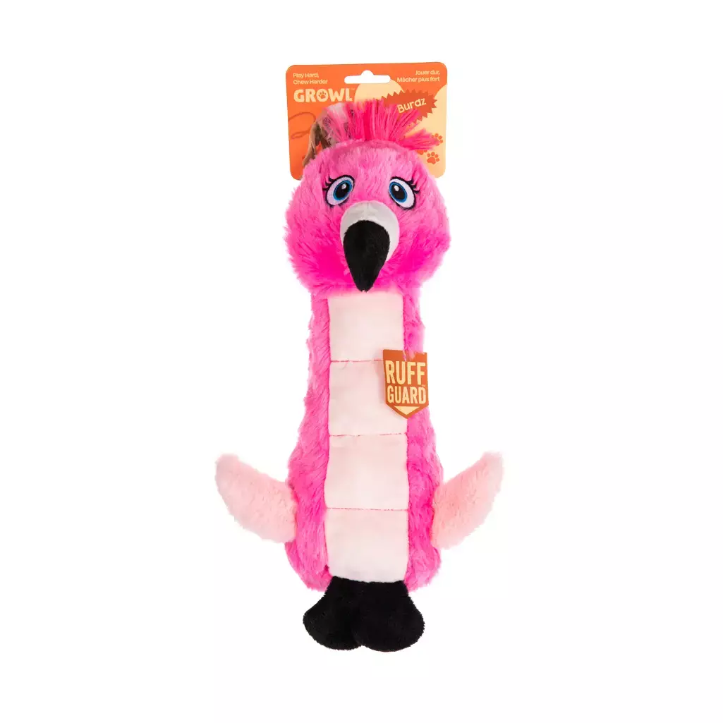 Growl Belly Burdz Fione the Flamingo Dog Toy on koiran pehmolelu, joka yhdistää hauskan muotoilun ja kestävyyden.