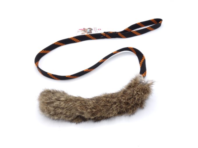 Havohravo Flat Rabbit Tug Long 20 cm koiran vetolelu on houkuttelevan karvainen, aito kaninkarvalelu kätevällä pitkällä vetokahvalla!