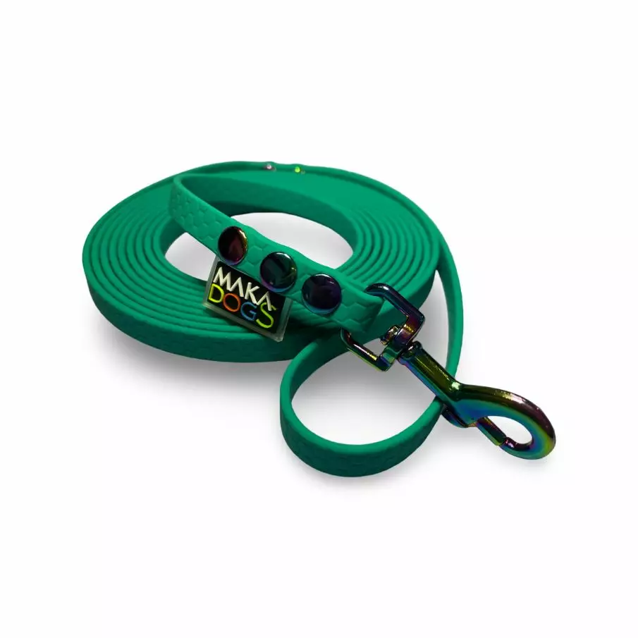 Maka Dogs Hexa-talutin on säänkestävä ja helposti puhdistettava talutin, joka kevyenä ja kestävänä sopii monipuolisesti treeneihin ja ulkoiluun. Tämän hihnan erikoisuus on kauniisti sateenkaaren väreissä hohtava lukko, joka toimii kuin koru taluttimen katseenvangitsijana.