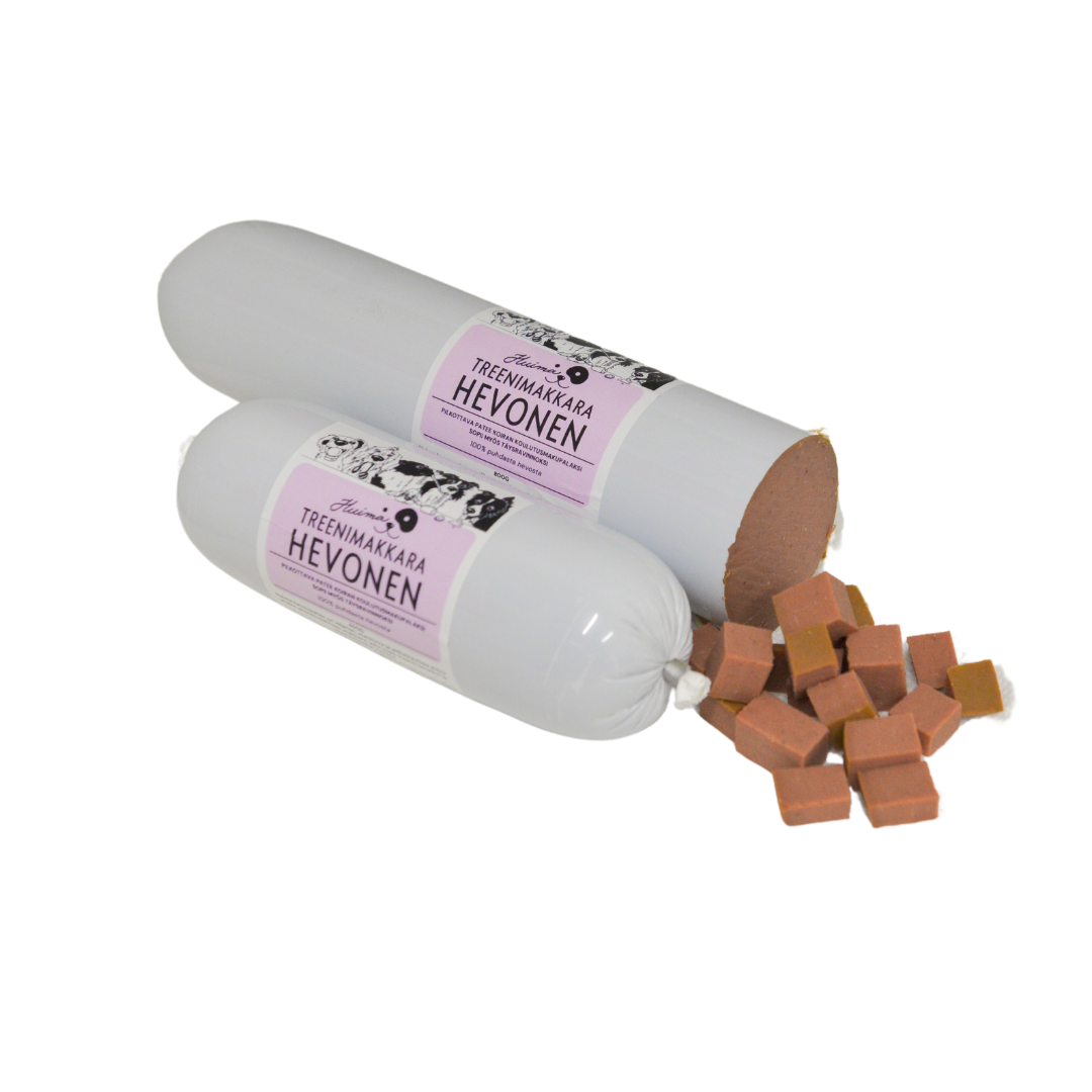 Huima treenimakkara Hevonen 800 g on viljaton, maistuva ja pilkottavissa oleva makkara, joka sopii treeninameiksi ja matkaevääksi tai muuten vain herkutteluun!