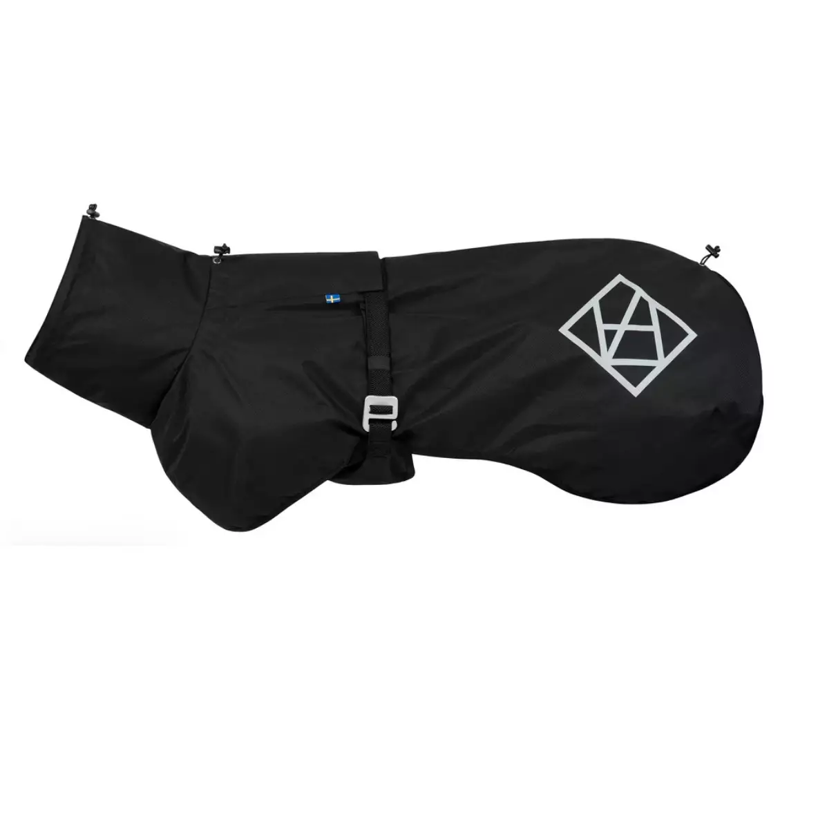 Veden- ja tuulenpitävän Stormsyn materiaalina on vedenpitävä polyesteri, jonka 10 000 mm vesipilari ja teipatut saumat pitävät kosteuden varmasti ulkopuolella. Sadetakki kuivuu nopeasti, joten se on heti valmis uudelleen käyttöön. Vedenpitävä koiran takki on suunniteltu liikkumiseen – sen istuvuus ei rajoita koiran liikkumista.