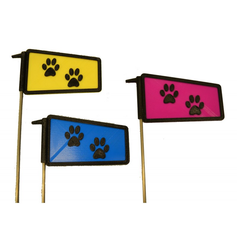 Tämä muovinen jälkipaalu on persoonallinen ja pirteä paalu peltojäljen alun merkitsemiseen. Jälkipaalun yläosa on muovia ja varsi metallia, jonka kärki on hiottu hieman terävämmäksi. Tämän ansiosta se on helppo työntää maahan ilman kovaa voimaa. Jälkipaalun muoviosan koko on noin 11,5cm x 6cm ja paalun kokonaiskorkeus varren kanssa noin 52cm. Paalussa on tassukuviot toisella puolella ja siitä on saatavilla kolme väriä; pinkki, neonkeltainen ja sininen