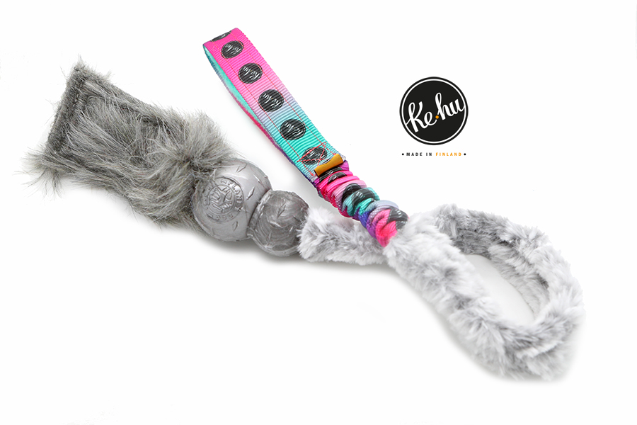 Ke-hu HäntäPupu on aavistuksen pidempi vetolelu, jonka varressa on pitkä osuus ihanan pehmeää lyhytnukkaista laadukasta keinokarvaa. Lelun päästä löytyy pupun muotoinen Planet Dogin laadukas täyskuminen pallo, josta lähtevässä keinokarvahännässä on vinku. Lelu sopii jahtausleikkeihin, lisäksi sen saa taiteltua mukavan pieneksi treeniliivin taskuun.
