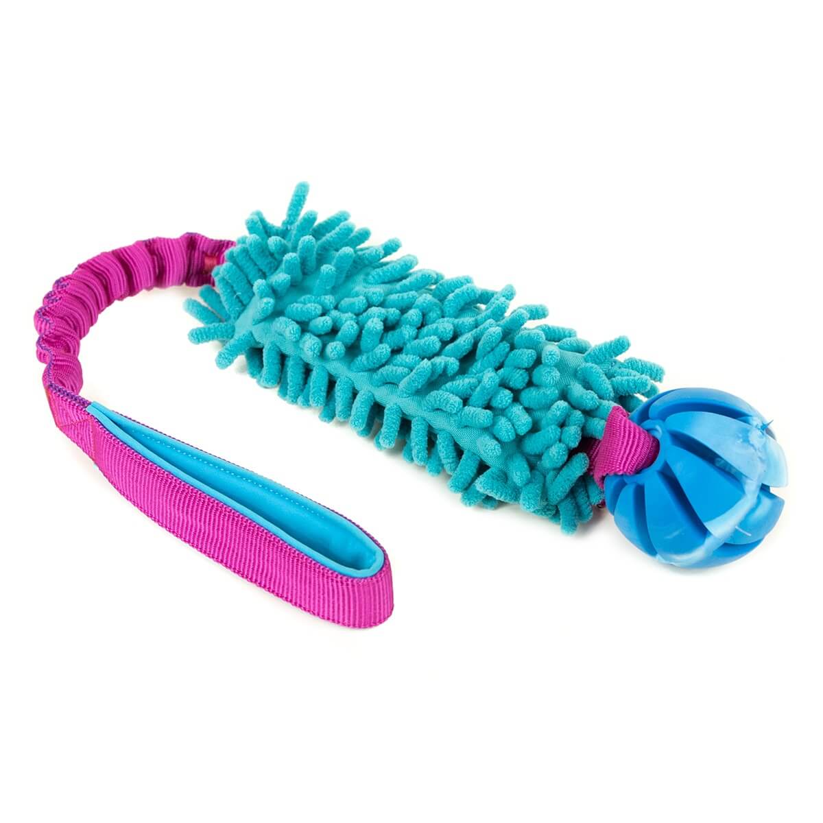 Todella pehmeä, mikrokuitua muistuttava hapsuinen "moppimateriaali" on miellyttävän tuntuinen koiran suussa ja monet koirat valitsevatkin sen suosikikseen. Erityisen miellyttävän ja pehmeän materiaalin vuoksi lelu sopii erinomaisesti pehmeäotteisille koirille ja pennuille. Pallon ansiosta lelu lentää hyvin heitettäessä ja varren sekä mopin ansiosta se ei pompi minne sattuu.