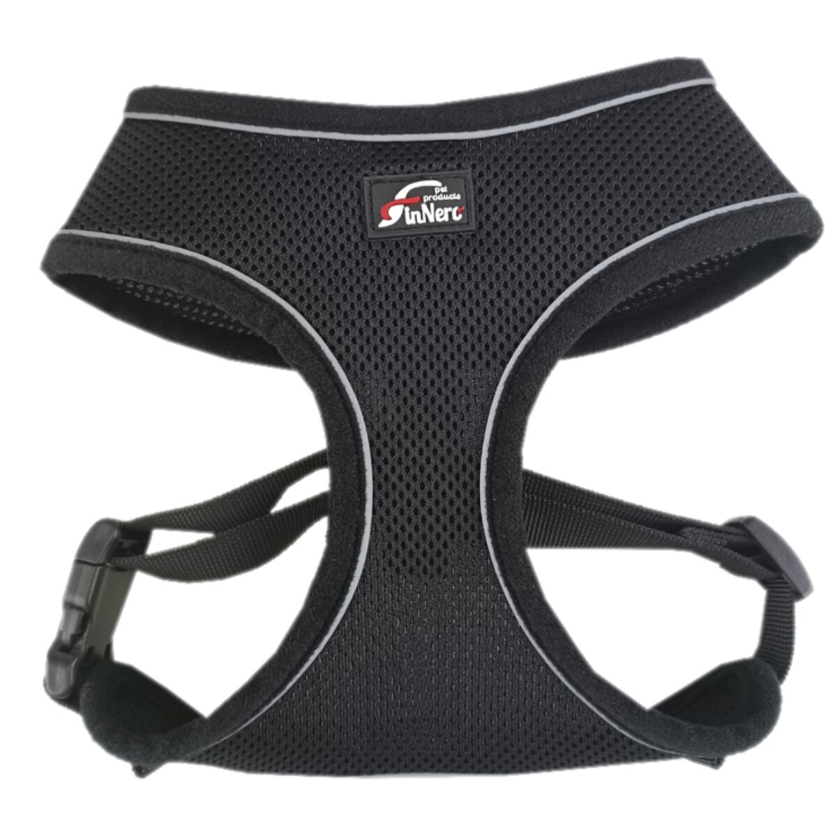 FinNero Light-koiranvaljas on valmistettu hengittävästä ja hieman joustavasta 100% polyesteri MESH-kankaasta. Valjas on todella helppo pukea sekä riisua koiralta. Kiinnitys on selkäpuolella pikalukolla.
