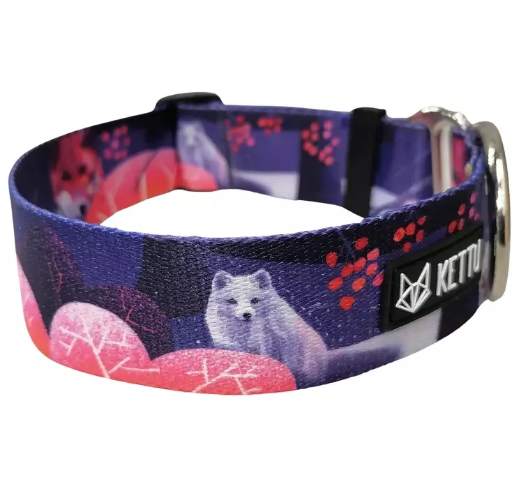 Kettu-malliston metsäinen, violetti kettukuosi tekee paluun valikoimaamme kevyenä ja lukottomana säätöpantana. Lukoton panta puetaan koiran pään yli pujottamalla ja säädetään kaulassa koiralle sopivaksi. Lukottomassa pannassa ei ole roikkuvia ja kilkattavia osia tai painavaa lukkoa, vaan panta istuu sulavasti koiran kaulalle. Panta sopii rally-tokon kisapannaksi, ja on tyylikäs valinta niin kisakehiin kuin arjen ulkoiluun.