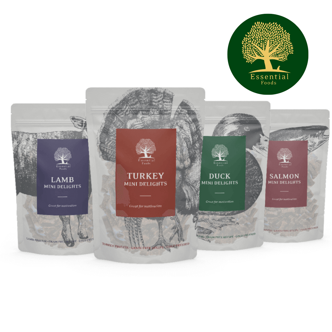 Kaikkien Essential-herkkujen raaka-aineet ovat EU:ssa tuotettuja. Raaka-aineita ei koskaan tuoda EU:n ulkopuolelta, ei esimerkiksi Kiinasta. Herkuttelutuotteet valmistetaan Alankomaissa. Ei sisällä viljaa.