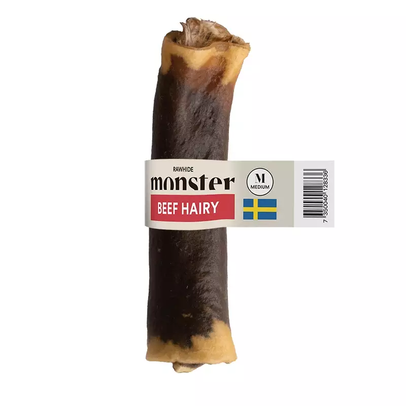 Monster Rawhide Beef Hairy -puruluut on valmistettu Ruotsissa 100 % ruotsalaisesta naudannahasta, johon on jätetty karvat tukemaan koirasi ruoansulatusta. Koirasi pääsee toteuttamaan luontaisia pureskelutarpeitaan ja nauttimaan aidosta makuelämyksestä karvaisten puruluiden parissa.