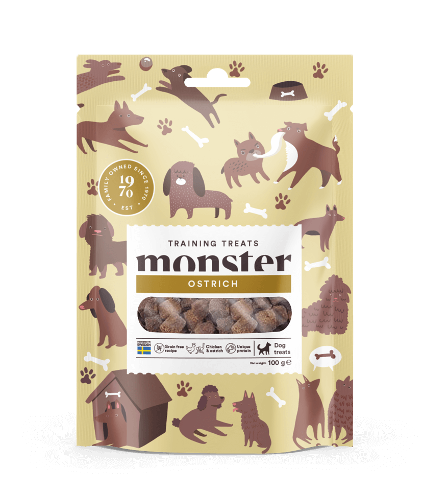 Monster Training Treats Ostrich on herkullinen ja terveellinen makupala kaikille koirille. Puolikostea makupala on poikkeuksellisen herkullinen ja raaka-ainesisällöt sopivat myös useimmille allergikoille ja herkkävatsaisille.