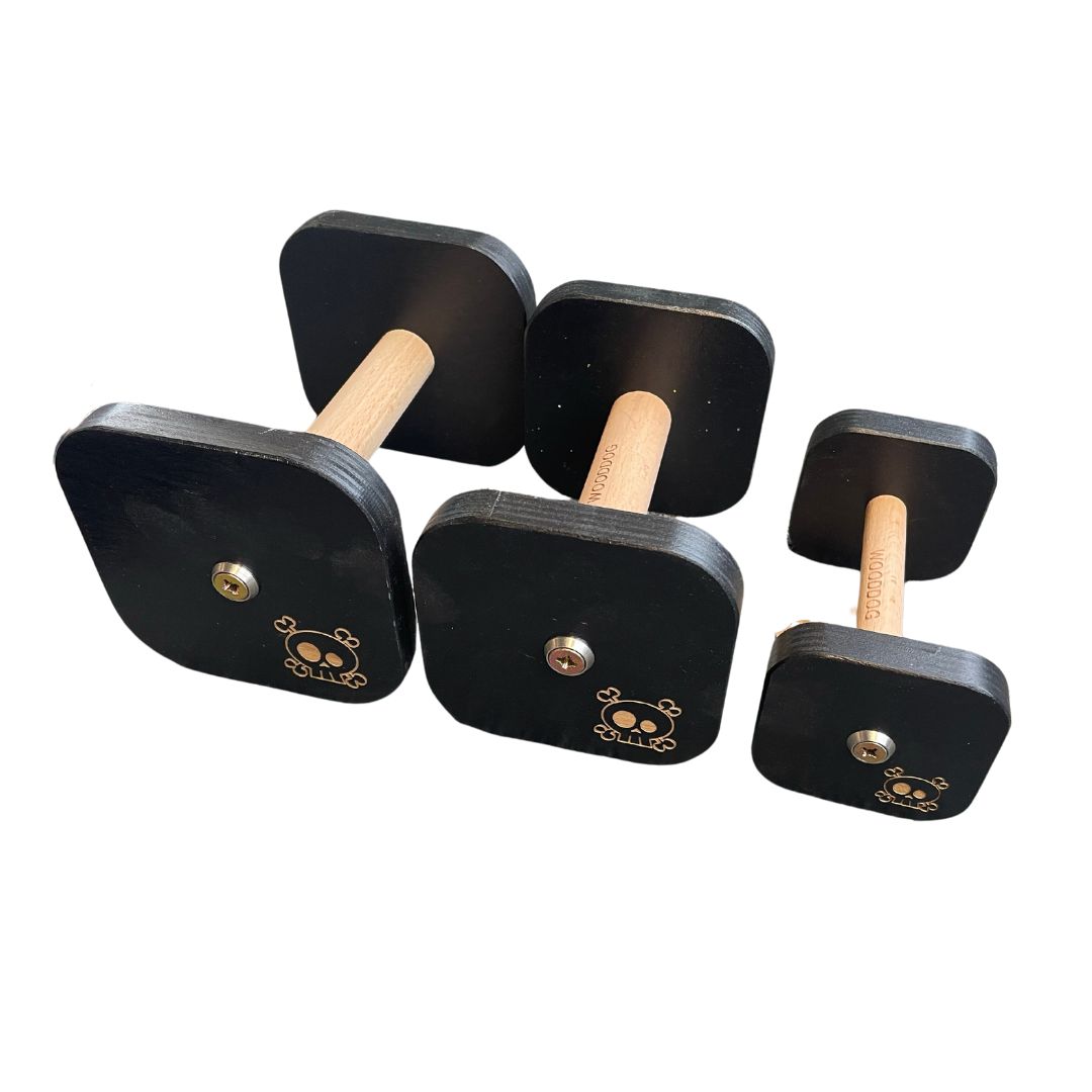 Laadukkaat Wooddog noutokapulat kestävät käyttöä ja näyttävät hauskoilta! Skull-kapulan kruunaa hauska pääkallokaiverrus. Kapulan laipat on valmistettu kestävästä 15 mm paksuisesta kastumista kestävästä vanerista ja keskiö on pyökkiä. Pyökki on hieman kovempaa puuta eikä keskiö näin ollen kulu niin helposti vaikka sitä hieman rajumminkin rouhaisisi. Laipat on ruuvattu pitkillä ruuveilla syvälle keskiöön kestävyyden takaamiseksi.