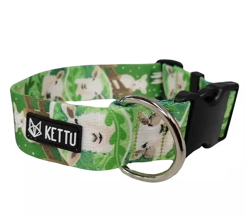 Kettu-malliston pikalukollinen ja säädettävä nylonpanta ihastuttaa suloisella lammas-kuosillaan. Lammas-kaulapanta sopii niin puuhakkaille paimenille kuin lampaita laskeville laiskottelijoillekin!