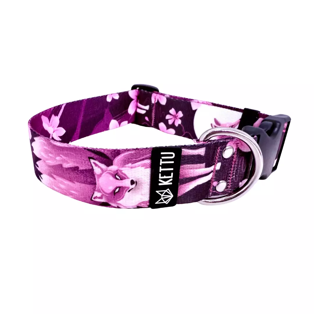 Kettu pikalukollinen ja säädettävä nylonpanta tyylikkäällä Taikakettu-kuosilla. Ihastuttavat ja persoonalliset Kettu koiran kaulapannat ovat tyylikäs valinta jokaiselle koiralle!
