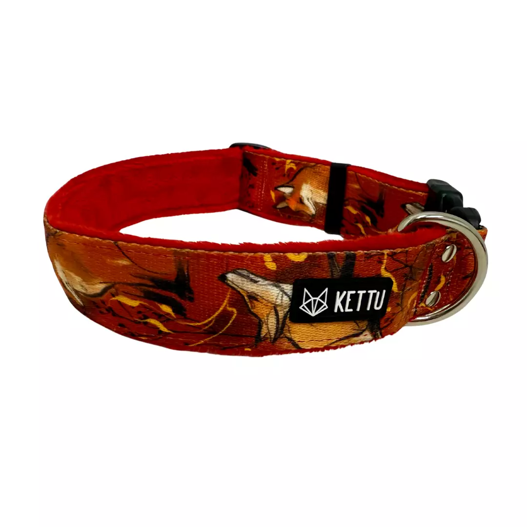 Tyylikäs ja persoonallinen, ruskea syyskettu esittelee itseään tässä kauniissa koiran nylonkaulapannassa. Pannassa on ohut ja pehmeä punainen vuori. Panta soveltuu myös rally-tokoon kisapannaksi. Tyylikäs valinta kaikille jäyhille metsänhengille ja unilla viihtyville nautiskelijoille.