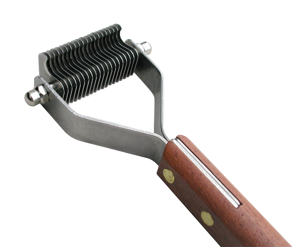 Tiheä 20-piikkinen Speed Stripper poistaa kuolleen irtokarvan ja ohentaa pohjavillaa helposti ja nopeasti.