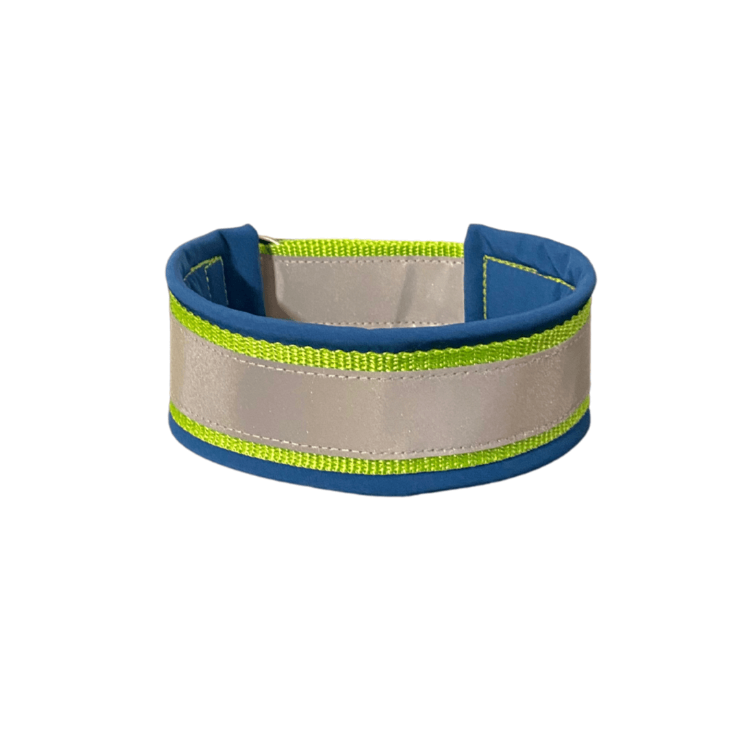 Leveään pantaan mahtuu myös hyvin näkyvä ja huippulaadukas Vizzlite heijastinnauha. Keskelle pantaa ommeltu ja liukuman pituuden jatkuva leveä heijastinnauha erottuu hyvin vaikka koiralla olisi jonkun verran karvaa. Heijastimella varustettu ulkoilija näkyy autoilijoille noin neljä kertaa kauempaa kuin ilman heijastimia kulkeva ulkoilija.
