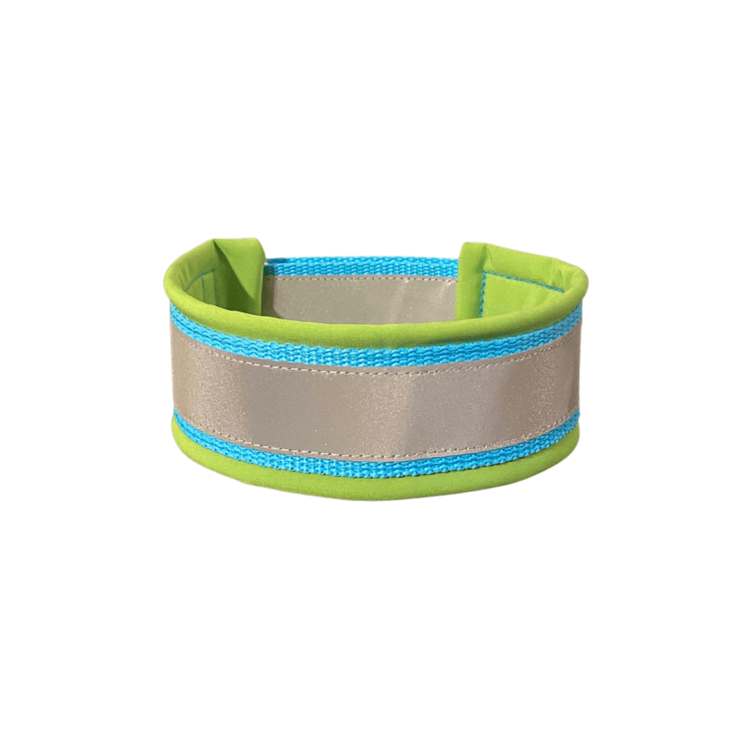 Leveään pantaan mahtuu myös hyvin näkyvä ja huippulaadukas Vizzlite heijastinnauha. Keskelle pantaa ommeltu ja liukuman pituuden jatkuva leveä heijastinnauha erottuu hyvin vaikka koiralla olisi jonkun verran karvaa. Heijastimella varustettu ulkoilija näkyy autoilijoille noin neljä kertaa kauempaa kuin ilman heijastimia kulkeva ulkoilija.