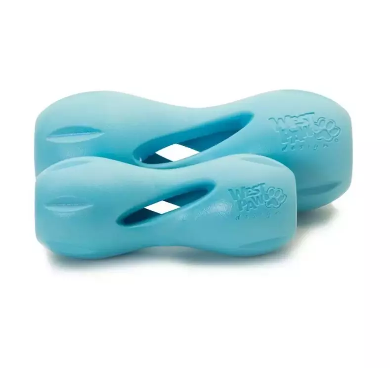 West Paw Zogoflex Play Puzzle Qwizl on aktivointilelu, joka on suunniteltu erityisesti ruoalla täytettäväksi, ja se käy myös puruleluksi. Kuten muutkin West Paw -lelut, kelluva Qwizl sopii hyvin myös vesileikkeihin.