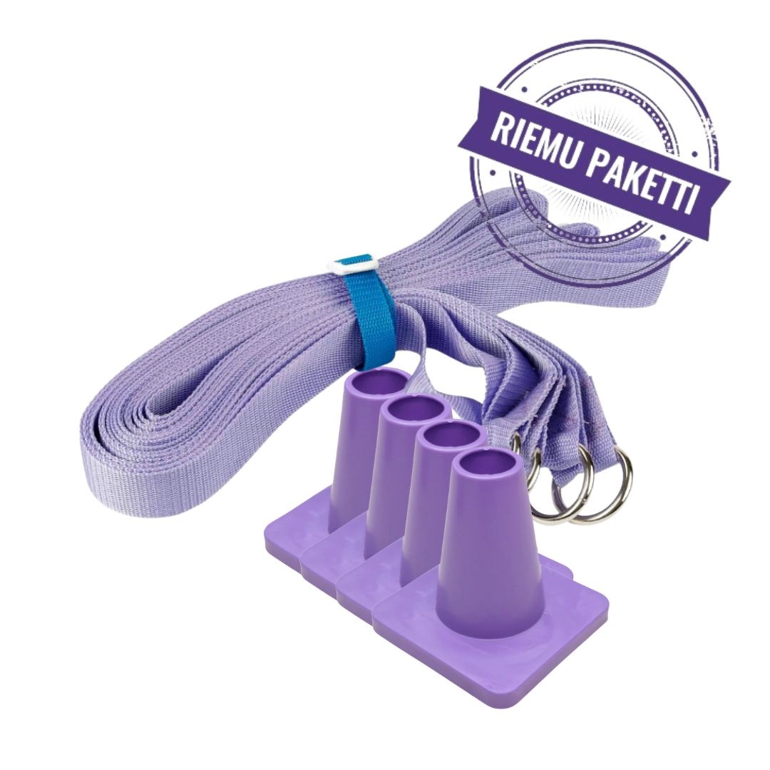 Ruutunauha + neljä merkkikartiota Lila nauha + lilat merkit