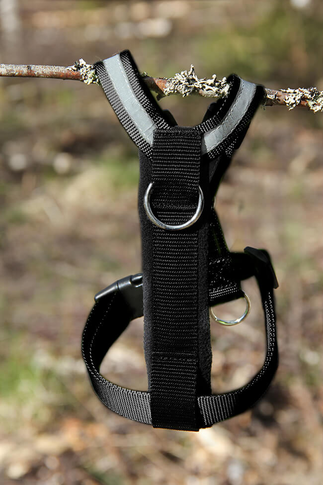 Salon-valjas on monipuoliseen käyttöön suunniteltu säädettävä nylonvaljas. Vedonesto-ominaisuus toimii silloin, kun koira kytketään rintapehmusteen yläosassa sijaitsevasta vedonestorenkaasta. Kiinnittämällä talutin tähän renkaaseen, kääntää valjas koiraa pois vetosuunnasta eikä koira saa vetoon voimaa yhtä paljon kuin normaaleilla valjailla. Näin koiraa on helpompi hallita. Vetämättömyyttä opeteltaessa koira on hyvä kytkeä esimerkiksi monitoimitaluttimella molemmista renkaista, jolloin "talutusvastuun" saa siirrettyä vedonestorenkaalta selkäpuolen tavalliselle renkaalle. Voit kiinnittää hihnan halutessasi myös vain perinteisellä tavalla valjaan selkäpuolella olevaan renkaaseen. Salon valjaissa on reilusti säätövaraa ja siksi ne sopivat mainiosti myös pennuille ensivaljaiksi – ne saa säädettyä pennulle sopivaiksi aina sitä mukaa kun pentu kasvaa! Valjaissa on myös näkyvät heijastimet.