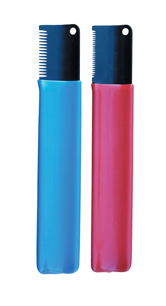 Tiheähampainen veitsi soveltuu loistavasti esimerkiksi tiukassa olevien jalkakarvojen nypintään. Tässä veitsessä on kuminen kädensija jotta saat tukevan otteen. Käytä trimmausveistä silloin, kun haluat vähentää ranteeseen ja sormiin tulevaa rasitusta nyppiessä. Muista vetää veitsellä karvansuuntaisesti, ettei veitsi katko karvaa vaan vetää sen juurineen.