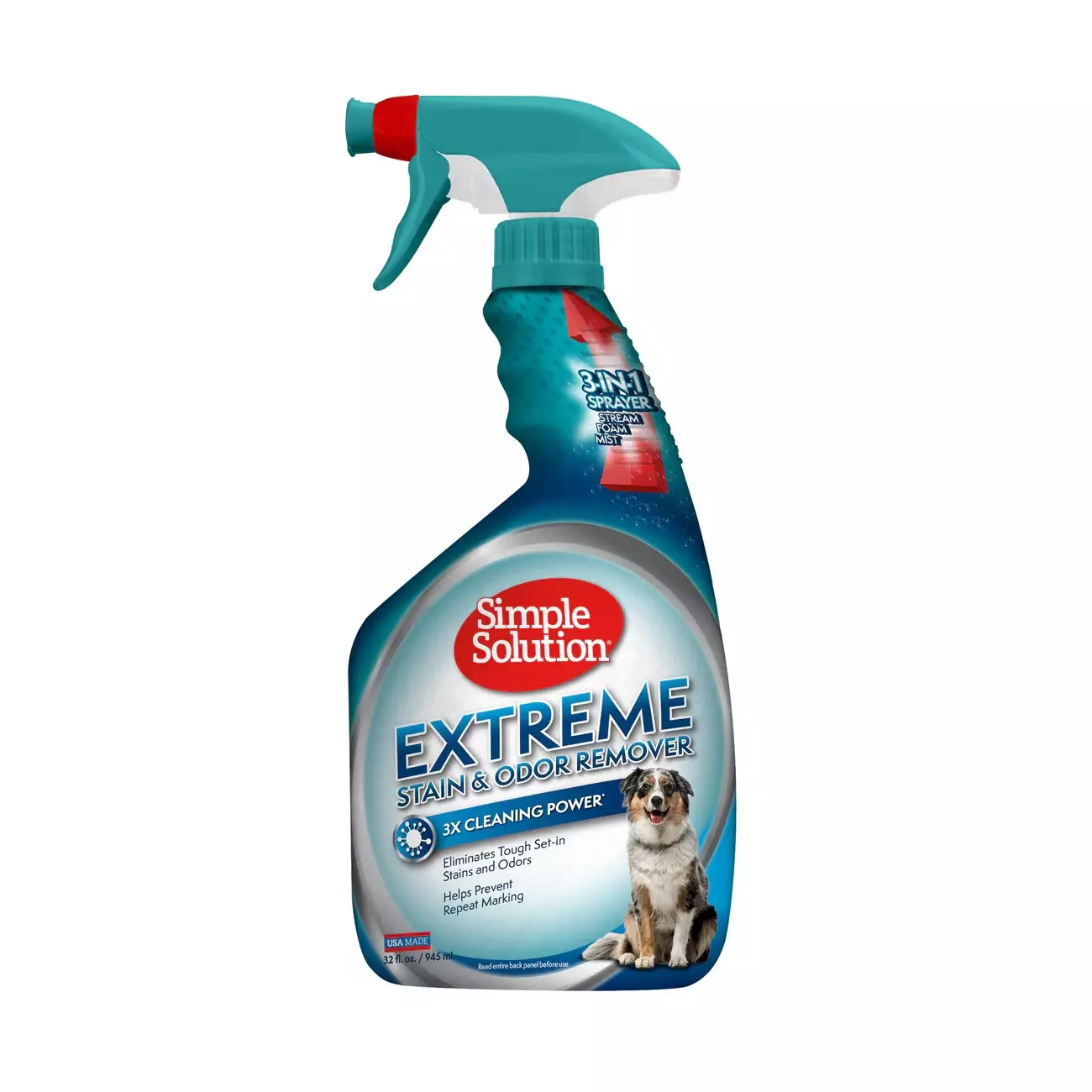 Simple Solution Extreme Stain & Odour Remover hajunpoistaja on suunniteltu erityisesti lemmikkien aiheuttamien virtsa-, uloste- ja oksennustahrojen sekä hajujen poistoon. Simple Solution puhdistussuihkeen toiminta perustuu entsyymiteknologiaan, joka hajottaa hajua aiheuttavat orgaaniset yhdisteet molekyylitasolla sen sijaan, että hajut vain peitettäisiin.