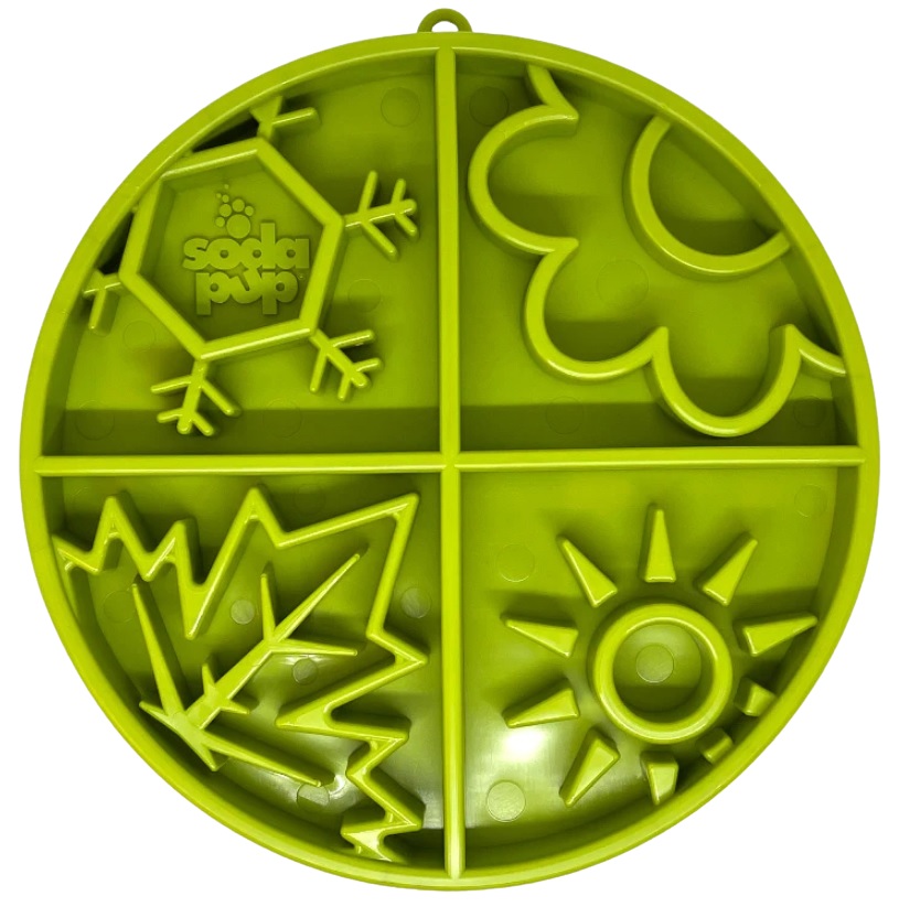 SodaPup Four Seasons virikekuppi on erinomainen valinta lemmikkien ruokailun hidastamiseen ja aktivoimiseen. Sen ainutlaatuinen suunnittelu, jossa on ateriointia hidastavia pienempiä lokeroita, estää lemmikkejä hotkimasta ruokaansa.