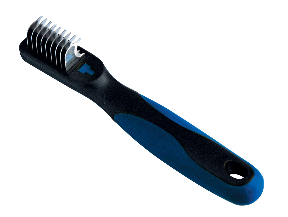 Show Techin tiheä 9-teräinen takkurauta auttaa takkujen selvittelyssä. Raudan terät ovat ruostumatonta terästä ja kärjet on pyöristetty turvallisuussyistä.