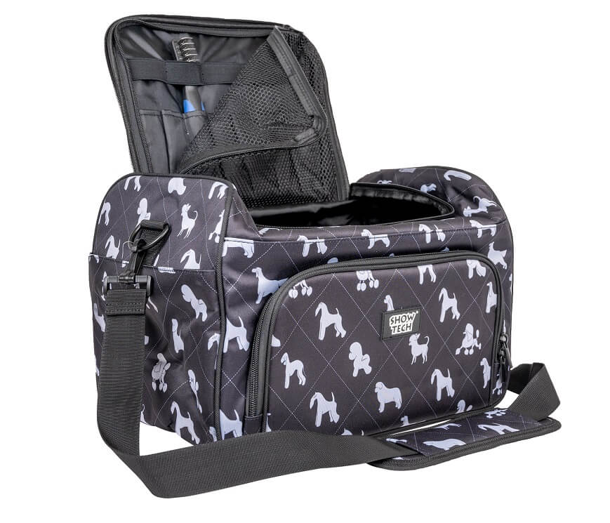 Trimmaustarvikkeille suunnitellussa tarvikelaukussa pidät kaikki turkinhoitovälineet hyvässä järjestyksessä. Sopii mainiosti näyttelytarvikkeille ja pienille treenivälineille.