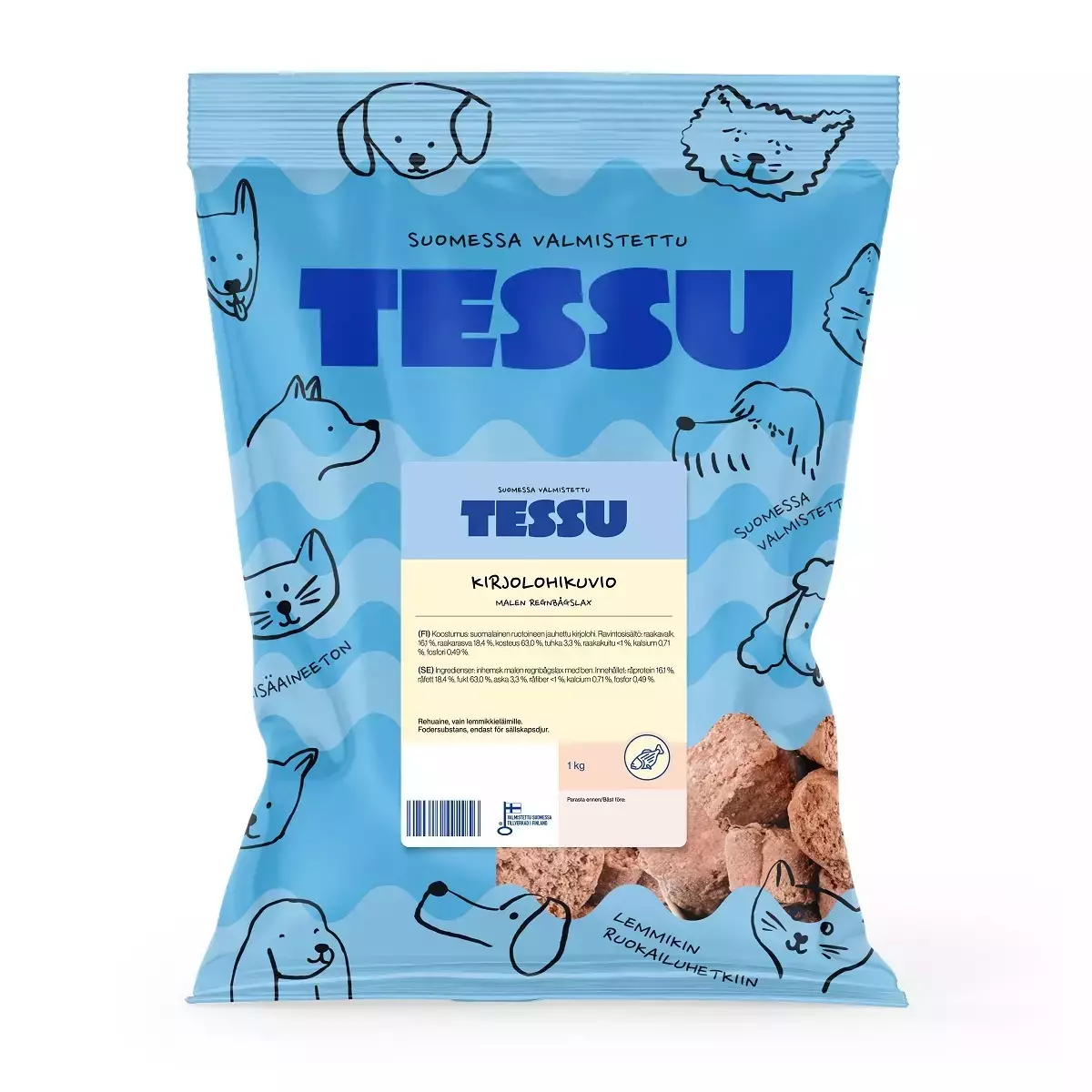 Tessu Lohikuvio on lisäaineeton lohijauhelihakuutio koirille ja kissoille. Syötetään joko jäisenä tai heti sulatuksen jälkeen. Voidaan syöttää päivittäin osana monipuolista ruokavaliota. Kätevä uudelleen suljettava pakkaus.