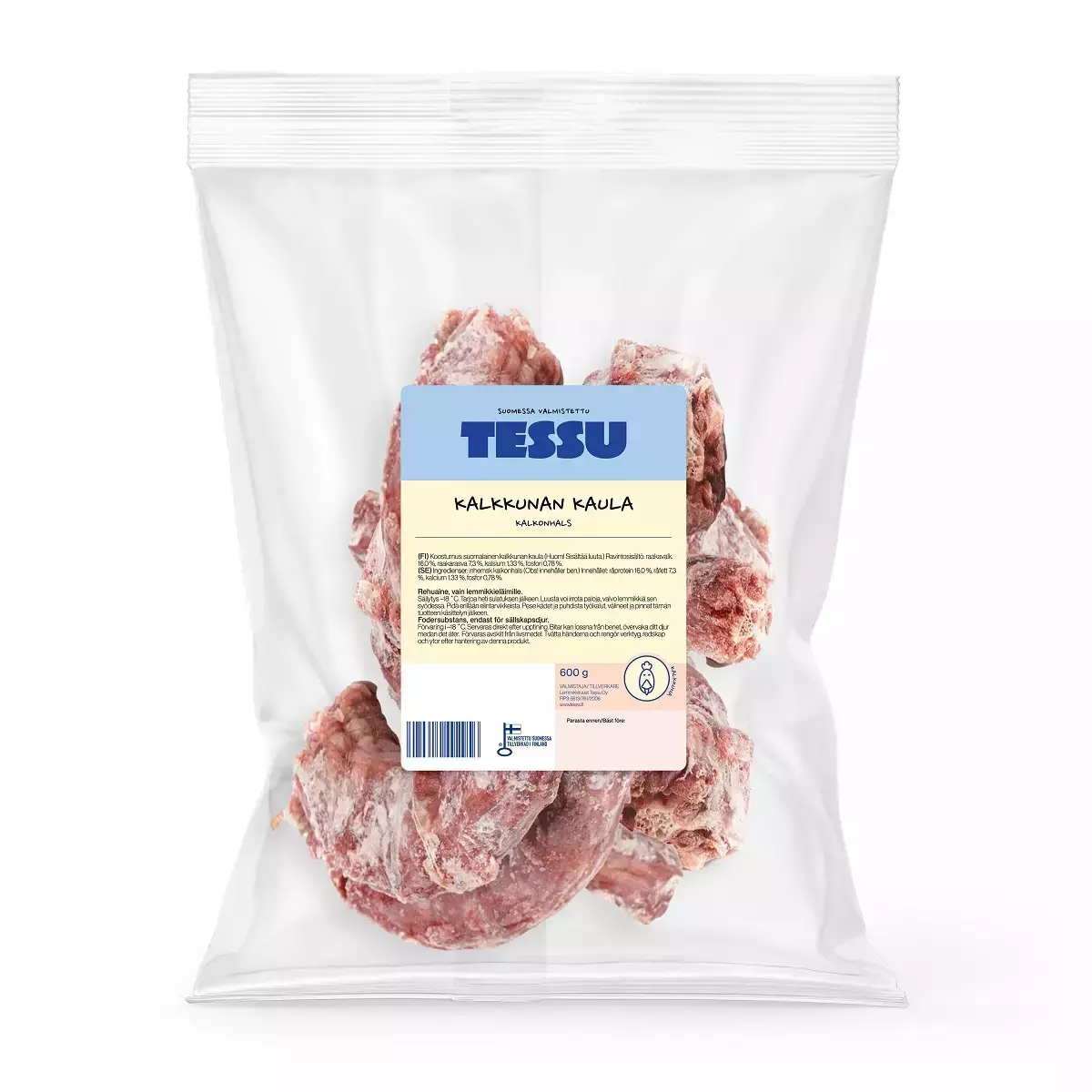 Koostumus: Suomalainen kalkkunankaula (Huom! Sisältää luuta.)